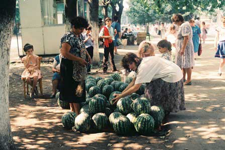 北オセチア自治共和国の首都オルジョニキッゼ(現ウラジ・カフカース)。ここまで来るとコーカサスの山並みはもうすぐ目の前でコーカサスから流れ落ちるテレク川の急流が市の中心を貫く。(左・中:1989年8月,右:1984年8月撮影)