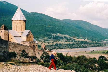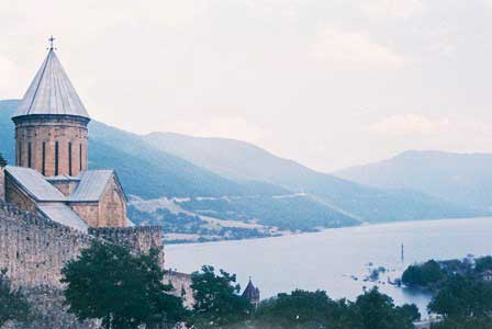 17世紀に建てられたという石造りの教会。84年に訪れたときにはアラグヴィ川をせきとめるダム工事が行われていて、5年後に訪ねたら川は湖になっていた。 (上:1984年8月,下:1989年8月撮影)