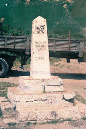 グルジア軍用道路の最も高いところが十字架峠。キリスト教国であるグルジアの国王がイスラム教国であるオセチアとの境界を示すために木製の十字架を建てたという言い伝えがある。 (1989年8月撮影)