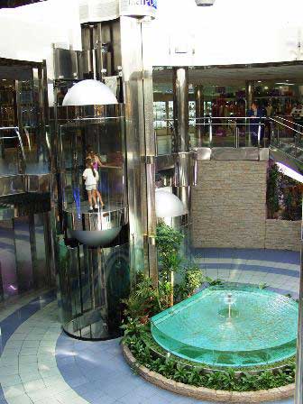 フレシャチク大通りの地下には、ソ連時代には想像もできなかったような近代的な地下街ができあがっていた。独立広場の下もそうなっているが、写真はフレシャチク大通りとシェフチェンコ並木道との接点、昔からある大きなルィノックの前。 (2003年8月撮影)