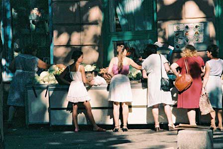 同じウクライナでありながら、首都キエフがあっという間に大変貌を遂げているのに対して、ここまでは配慮も資金も行き渡らないのか、オデッサの街は市の中心部でもちょっと路地を入るとこうした風景にいくらでも出会える。 (2003年8月撮影)