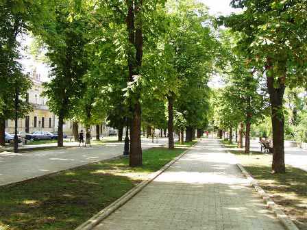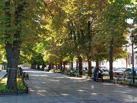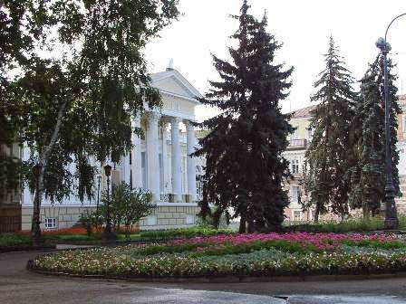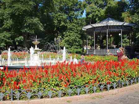 デリバソフスカヤ通りに面した市立公園。オペラバレエ劇場からそう遠くない位置にある。 (2019年9月撮影)
