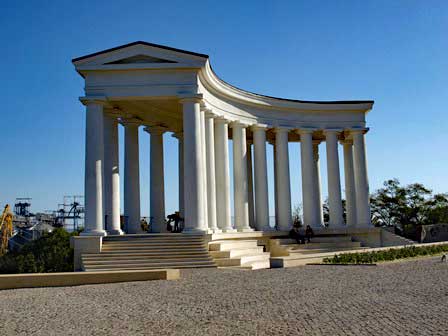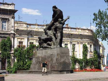 1905年の第一次ロシア革命の際に立ち上がった戦艦ポチョムキンの水兵達に捧げられた記念碑。ポチョムキンの階段を上がった後そのまま150mほど進んだ位置にある。 (2003年8月撮影)