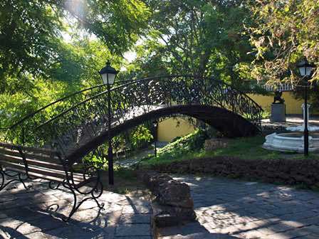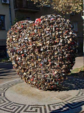 前頁の「白い柱廊」からいくらも離れてないところにある「Old Odessa Corner」という名の小公園。太鼓橋のような橋があって、そこを恋人と手をつないで渡り、欄干に南京錠を残して行くと永遠の愛になると言われたのだが、しかし、愛が重過ぎて橋が壊れかけたため、現在では近くにハート型のオブジェを置いて、そこに錠をかけるようにしたんだとか。 (2019年9月撮影)