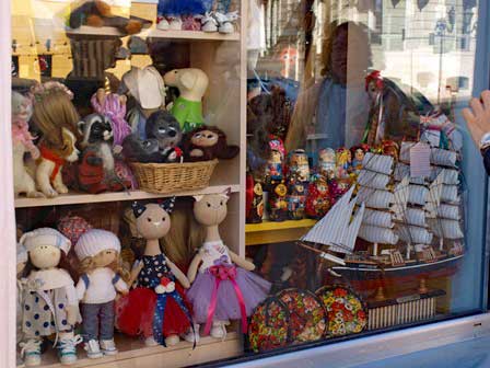 市内で見かけたお土産屋さん。もちろん、左の写真が入口で、右の写真はショーウィンドウ。 (2019年9月撮影)