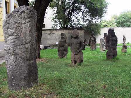 市の歴史博物館前庭に、10〜11世紀前後のポロベツ人のものだという不思議な石像が展示されていた。 (2003年8月撮影)