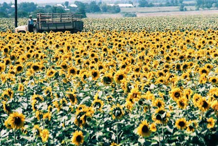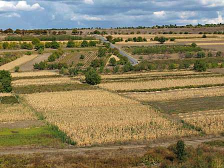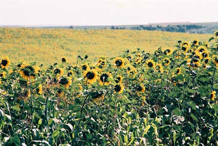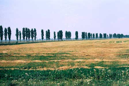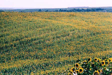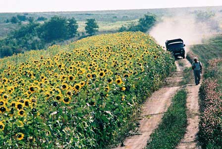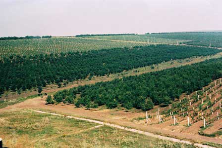 | ウクライナからモルダヴィアに入ると広大なブドウ畑が広がっていた。棚を作らないのが日本の甲州とは違うところ。 (1985年8月撮影)
