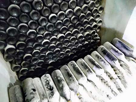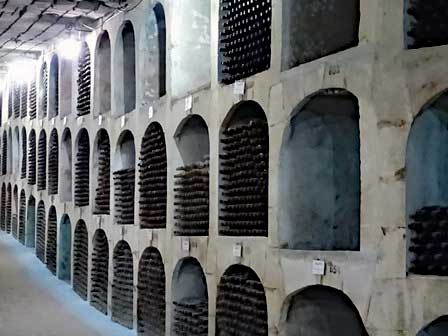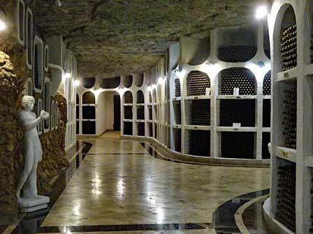 前ページの写真を撮ってから30年以上経って訪れたキシニョフ郊外の大規模なワイナリーは、正門を入るといきなりワイングラスの噴水で迎えてくれるなど、すっかり市場経済に馴染んでいる雰囲気であったが、ネットで調べてみると国営企業らしい。ワインは地下に縦横にめぐらされたトンネルに貯蔵されていて、上段右の写真はそのトンネルを示した地図。中段右の写真はトンネルの掘削に使う機械だとか。 (2019年9月撮影)