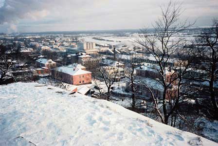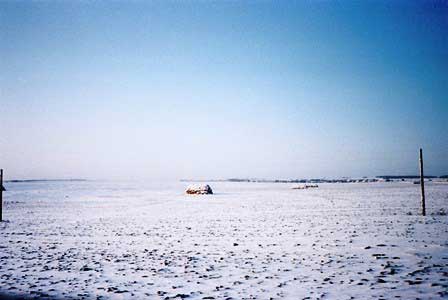 モスクワ〜スズダリの間を走るバスの車窓から見た風景。さえぎるもののない平原が広がる。 (1983年1月撮影)![]()
