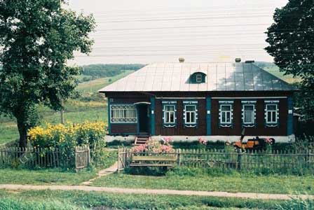 モスクワからトゥーラへ向かう街道沿いの民家。庭には花がいっぱい。 (1985年8月撮影)