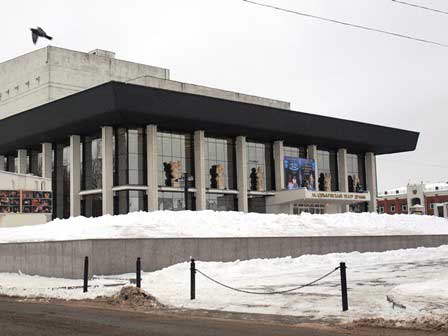 市中心部の街角の風景。最下段中央はアカデミー・ドラマ劇場、同じく右は子ども広場。 (2014年12月撮影)