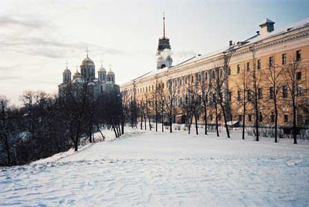 かつてのウラヂーミル・スーズダリ公国の首都、現在のウラヂーミル州の州都。小高い丘の上に多くの寺院などのある旧市街があり、そこから鉄道駅などのある新市街を見下ろせる。 (上段:1983年1月,下段2014年12月撮影)