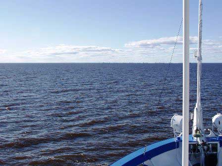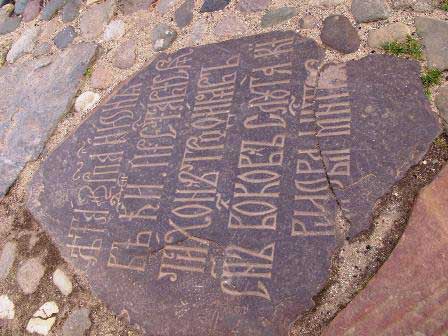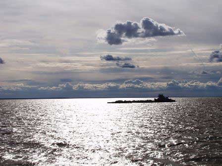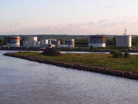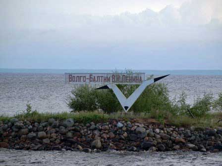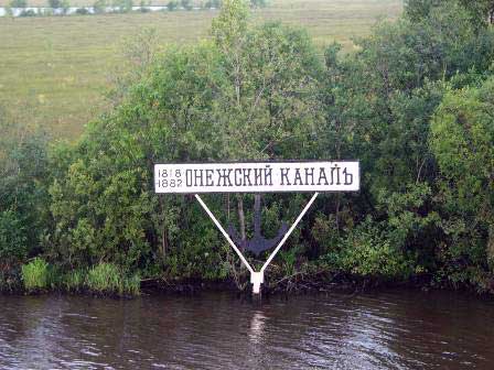 ヴォルガ・バルト水路からオネガ湖に出る河口にあった標識。ヴォルガ・バルト水路がロシア経済の中で極めて大きな役割を果たしている、果たすことが期待されているのを、こんな質素な標識からも感じ取ることができる。 (2009年8月撮影)