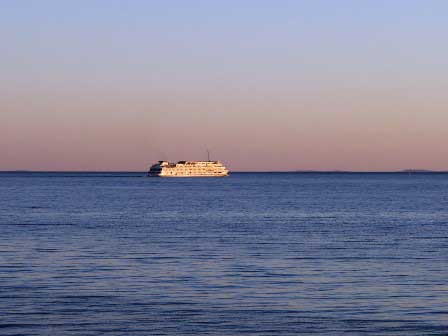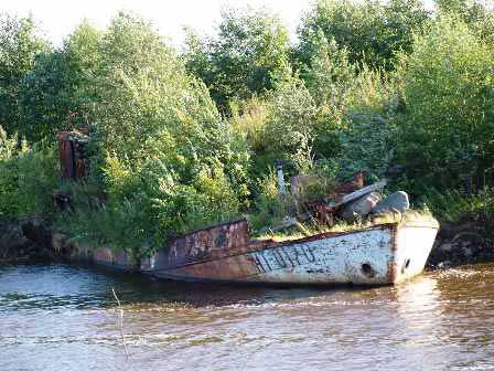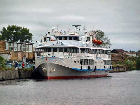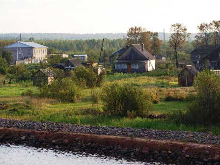 村の船着き場。私が初めてここを訪れた1995年には“グリーン・ストップ”のためにこの村に停泊したのだが、近頃では、キリロ・ベロゼルスキー修道院観光の拠点としてひっきりなしに観光船がやってくるようになり、船着き場にはいちどきに複数の船が停泊することが珍しくない。 (2009年8月撮影)