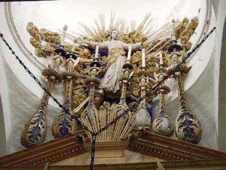 クレムリンの中にある教会。ロシア正教会といえば、平板なイコンで飾られるのが普通で、このような立体的な像による装飾があるのを見て、ほんとうに正教会なのかと思ったほどだ。 (2009年8月撮影)