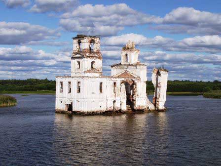 |  | ヴォルガ・バルト水路のうちリビンスク貯水池とベーロエ湖の間にあるゴリツィの船着き場近くに立つ教会。 (左:2009年8月,右:2005年8月撮影)