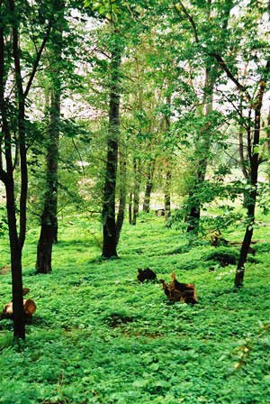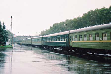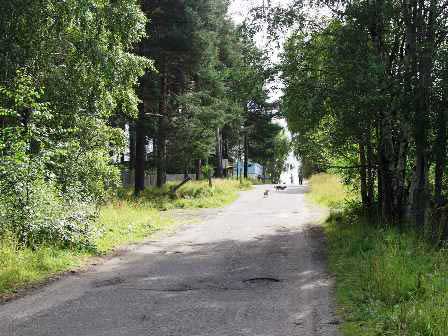 | 木々の多い町で市中でも左のような場面はいらくでもある。下の写真はペトロザボーツク駅のプラットホーム。すぐ裏がもう林になっている。 前のページへ 次のページへ 目次へ戻る