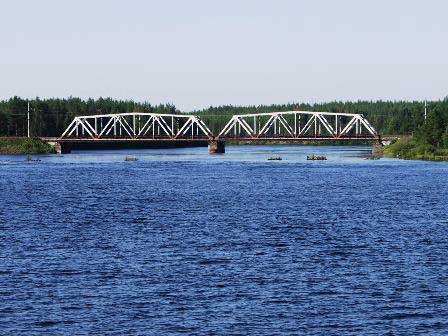 運河を航行中に見かけた鉄道用の橋。ベロモルスクを経てムルマンスクに向かう北方鉄道が、運河と並行して走る。 (2009年8月撮影)