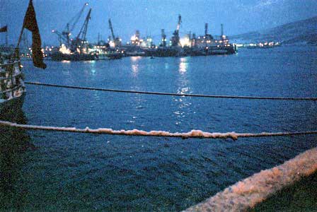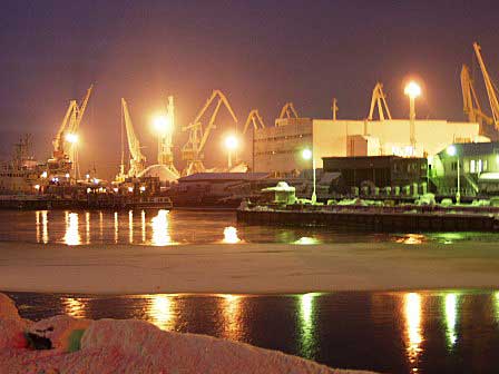 北極圏内に位置しているにもかかわらずこの港はメキシコ湾流の影響で冬でも凍結しない。ロシアにとっては貴重な不凍港だった。 (上:1985年12月,下:2005年12月撮影)