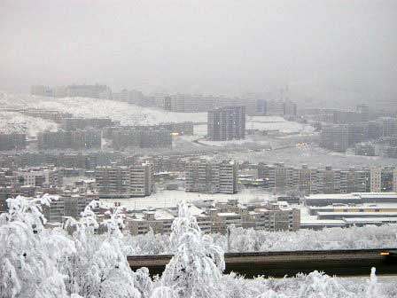 背後の丘から見たムルマンスク市街の一部。 (2005年12月撮影)
