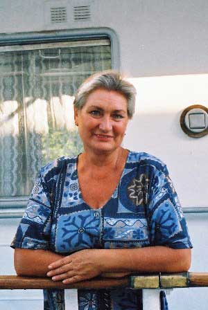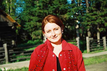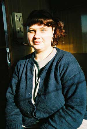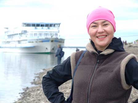 エニセイ河クルーズ船の専属ガイド嬢。何ヶ国語も話す才媛。 (1999年8月撮影・トゥルハンスク)