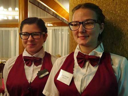 こちらも下船前夜キャプテン・ディナーの時の写真で、やはりちょっとあらたまった服装をしているが、民族衣裳ではない。 (2018年9月撮影・オカ川)