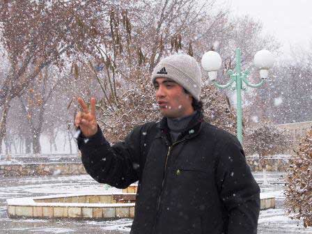 2006年暮れのウズベキスタン旅行のおりにスルーガイドとして付いてくださったザファールさん。日本語がものすごく堪能なだけでなく、日本の歴史、文化、自然、民俗等々あらゆることに造詣が深く、優れた通訳・ガイドであるためには語学だけでなく深い教養が必要ということを示すお手本のような人だった。見学場所やバスの車内でのお話もガイドブックにあるような通りいっぺんのものではなく、人生や愛や神や世界についての彼自身の考えが滲み出てくる内容で、聞いていてとても勉強になった。しかもそういったなかみを巧みなユーモアとウィットに包んで話す人間味あふれる素晴らしい青年で、こういう若い人たちの活躍するこの国の将来には大きな希望が持てると思った。 (2007年1月撮影)