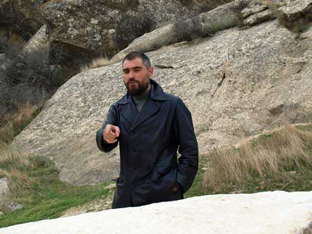 バクー市内で募ったお客をバクー郊外へ案内するツアーのロシア語ガイド。ロシア人の夫妻3組と私の計7人を引率してくれた。朝9時から夕方6時までのツアーだったが、終始力強い話し方で、昼食休憩の時間を除いてしゃべりっぱなし。疲れを知らないという感じだった。 (2019年12月撮影・ゴブスタン)