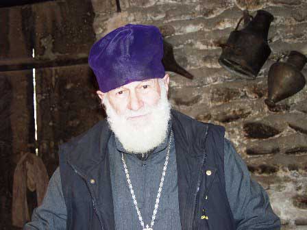 グルジア共和国カヘチア地方の小さな村の司祭。家々を訪ねた時も家人に神の祝福を与えるのを忘れない。 (2004年12月撮影)