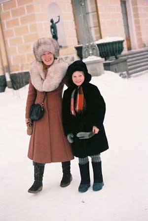 今から10年以上も前のある年の冬、レニングラード郊外のパブロフスクに行った時、居合わせた親子連れの写真を撮ってあげてそれを送ったら、丁寧な返事が来て、その後も何度も手紙が届いた。手紙にはプーシキンの詩だのが引用されていたりで私には少々難しかったが、書き手のカーチャが知性的な女の子だということをじゅうぶんうかがうことができた。 (1986年12月撮影)
