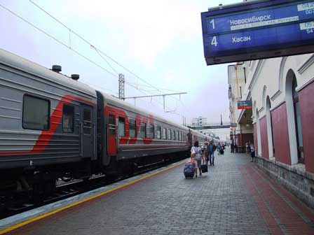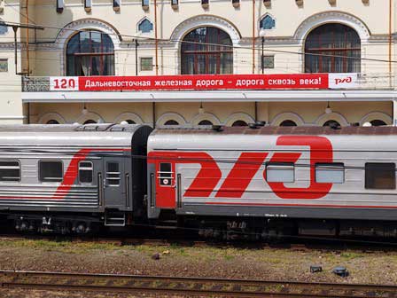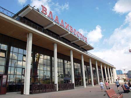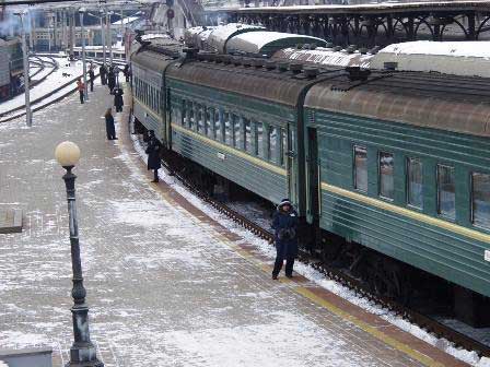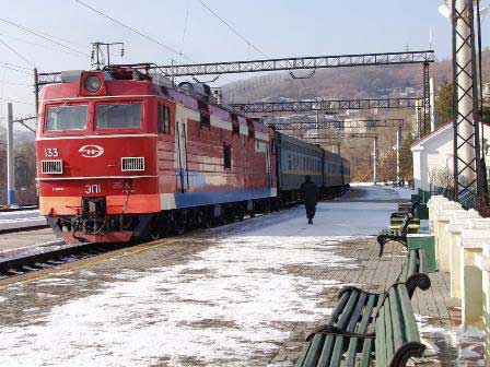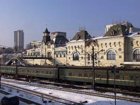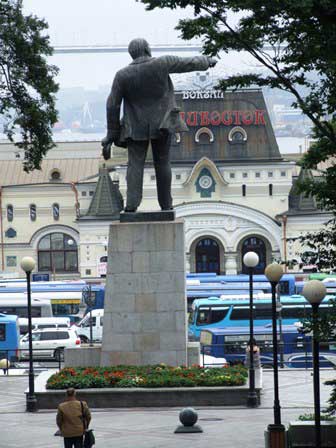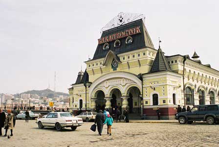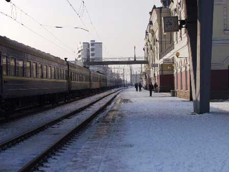 「チーハオケアンスカヤ」、すなわち「太平洋」という名のナホトカ鉄道駅。ナホトカが面している海は太平洋ではなく日本海なのだが、太平洋への玄関口を求めるロシア人の気持ちが伝わってきそうな名前だ。ソ連時代、我々外国人はウラジオストクに入ることはできなかったから、シベリア鉄道の旅はこの駅が起点だった。上の写真で停車中の列車はハバロフスク行き急行「ヴォストーク」。 (2007年12月撮影)