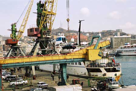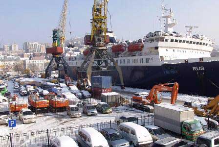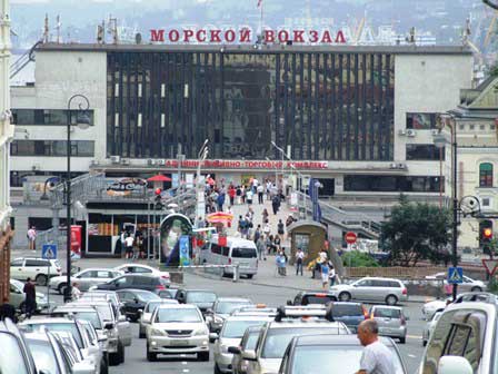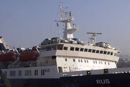 ウラジオストクと言えば、一時期、日本車の陸揚げ地点として全ロシア中にその名を知られていた。写真の船は貨物船ではない。れっきとした客船だが、乗客が乗って来たのかどうか、とにかく最上階までデッキというデッキには日本の中古車がぎっしりと積まれていた。 (左:2001年3月,中・右:2007年12月撮影)