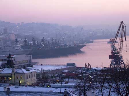 陸側から見たナホトカ港の一部。 (2007年12月撮影)