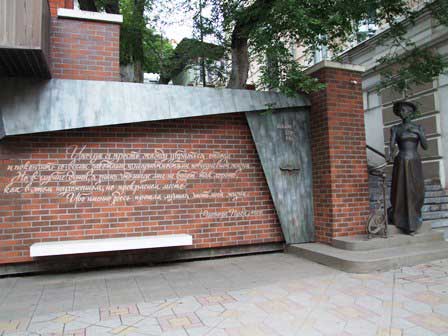 |  | 19世紀末からここウラジオスコクに滞在したアメリカ人女性。ウラジオストクの様子を手紙で広く発信したと言われる。像は、市のメインストリートであるスヴェトランスカヤ通りの大きな郵便局の隣にある。 (2015年8月撮影)