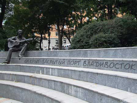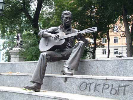 ソビエトの「吟遊詩人」として、人々から絶大な人気のあった詩人・歌手V・ヴィソツキーの像。 (2015年8月撮影)