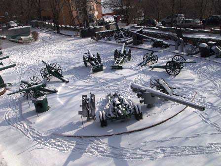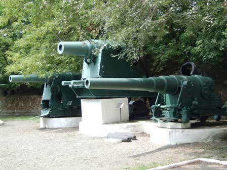 写真は、博物館の屋外に置かれた大砲などの陳列物。日露戦争当時に使われたものが多かったように思う。 (上段左:2007年12月,その他:2015年8月撮影)