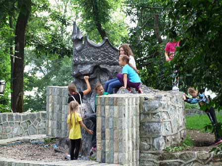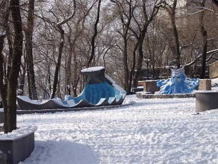 ニコライ凱旋門のすぐ上にある小公園。ロシアではおそらく「公園」の範疇にも入らないのではと思われるほど小さなもので、近所のこどもたちが遊ぶための広場と言ったほうがいいかもしれない。でも、遊具のデザインがとてもファンタジック! (左:2007年12月,右:2015年8月撮影)