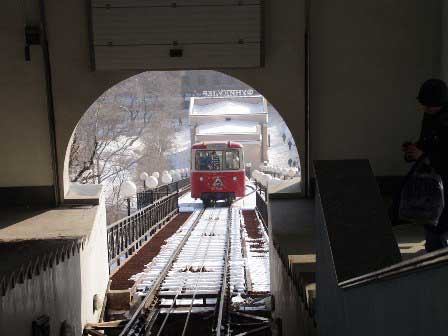 市の中心部を俯瞰できる鷲の巣展望台にあがるケーブルカー。観光用だけでなく地元の人たちの日常の足としても使われている。キエフのケーブルカーよりも距離が短いと感じたが実際はどうであろうか。 (上段右:2017年9月,下段右:2015年8月,その他:2007年12月撮影)