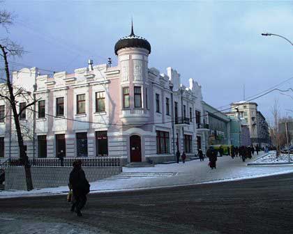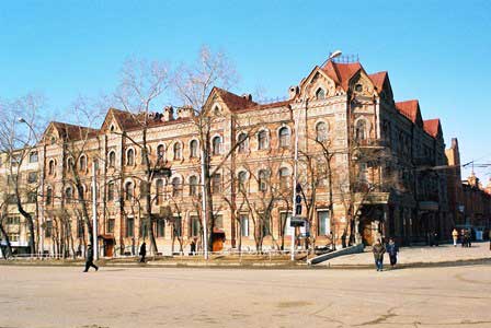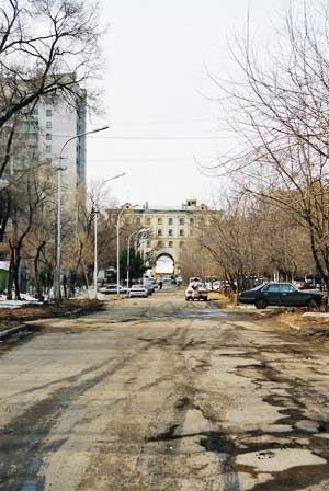 ハバロフスクは互いに平行に走る2本の沢筋と3本の尾根道に沿ってできた町で、街を歩く時にわかりやすいと言えばたしかにそうだが、坂が多いので歩く向きによってはひどく疲れる。 (上右のみ2001年3月,他は1999年3月撮影)