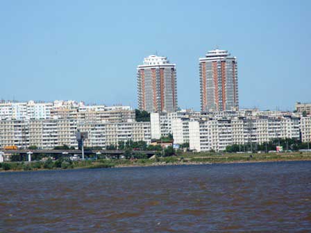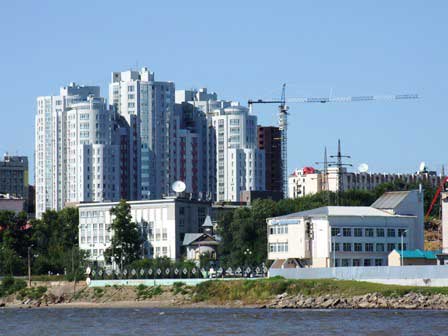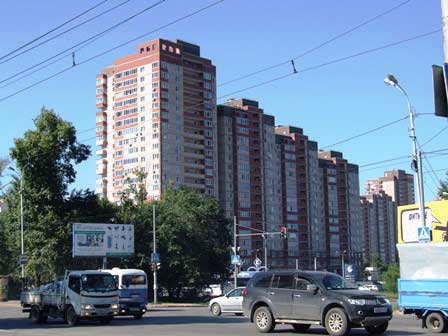 前頁の写真を撮ってからさらに10年が経過した後での写真。いちばん右の写真の建物は、もしかすると住宅ではなくオフィスビルかもしれないが、とにかくこういう高層の、しかもなかなか綺麗な建物が次々建つというのは、ソ連時代のハバロフスクを知っている身にとっては、なかなか衝撃が大きい。 (2012年8月撮影)