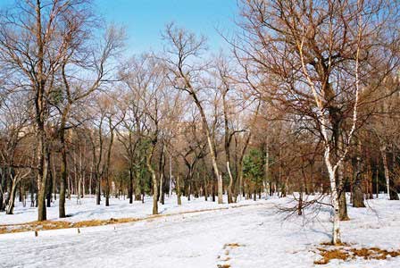 アムール河畔の公園の木立ち。これが大河のほとりとは思えない。 (1999年3月撮影)
