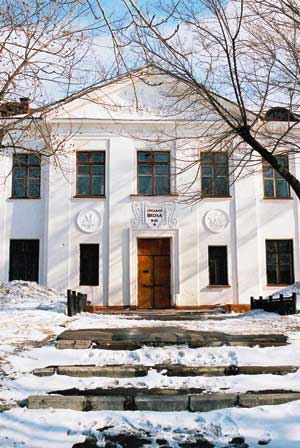上の写真は市内の図書館。何だか由緒ある建物らしい。右は市内を歩いていて見かけた小学校。こちらは別段由緒あるものではないけれど、ちょっとシャッターを押したくなる不思議な雰囲気があった。 (1999年3月撮影)