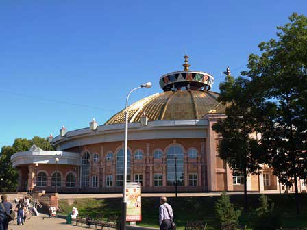 サーカスの常設小屋。もう一枚の写真は、サーカスに隣接する緑地。こんな広々とした場所があることからもわかるように、ハバロフスク市の中心を離れた市の南部、にある。 (2012年8月撮影)