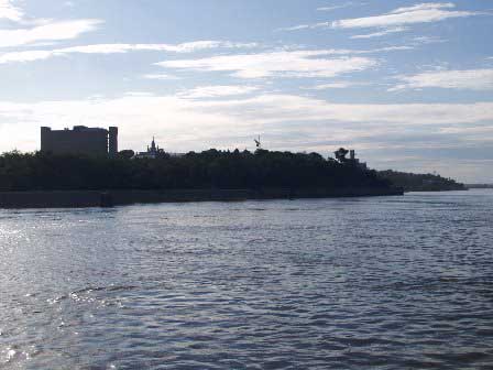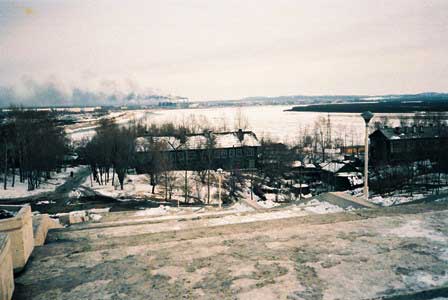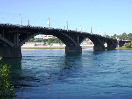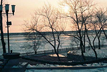 アンガラ川をはさむイルクーツク旧市街と新市街を結ぶ最も重要な橋。「絵はがき」の章にも書いたが、レーニンが亡くなった時、市民が寄せたお悔やみの募金をクループスカヤに届けたところ、「このお金は市民が最も必要としていることに使いなさい。」と言われて架けたという言い伝えがあり、ソ連崩壊後の今でも、現地ガイドはその話をする。 (2011年8月撮影)