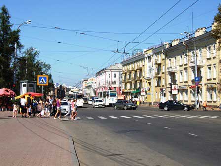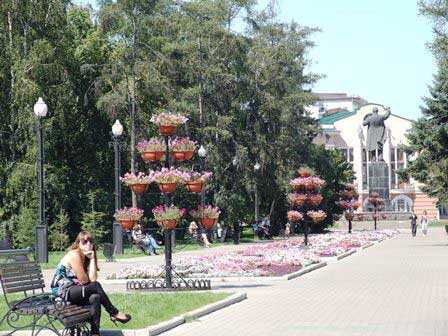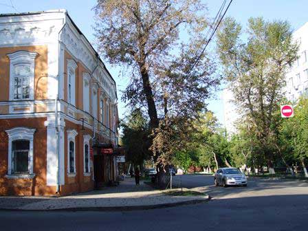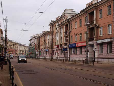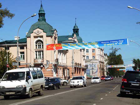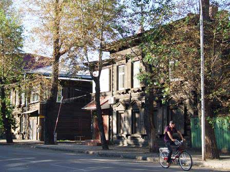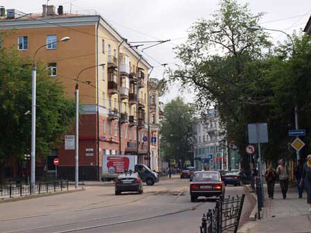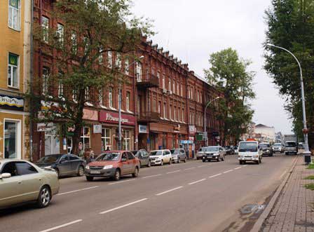 2011年夏の旧市街の風景。ソ連時代の面影を色濃く残している所もあるけれど、他方では、モスクワから始まった近代化の波がここシベリアまで押し寄せ、市内いたる所工事中で、モダンな建築物も次々と誕生している。 (上:2011年8月,下:2016年8月撮影)