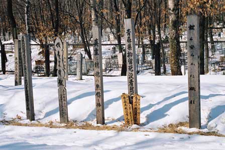 ハバロフスク空港のすぐ近くに広大な墓地があり、その一角にシベリア抑留中に亡くなった日本人の墓地がある。墓地は清掃が行き届いていて丁寧に管理されていることがわかる。日本人の旅行団が行くと管理人が「ちゃんと線香を持ってきたか」などと聞く。 (上:2012年8月,下:1999年4月撮影)