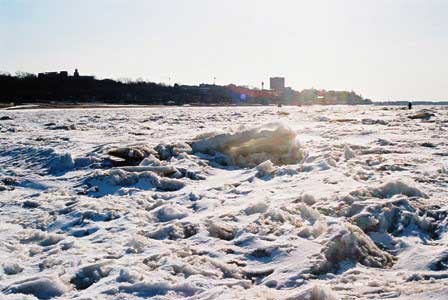 中国とロシアを隔てる大河アムール。上段左2枚が夏の写真。冬には下段の写真のように全面に氷が張る。上段3枚目は、氷がゆるむのを待ちわびる春の写真。下段左も同じ季節。 (上段左から、2002年8月,2012年8月,1984年3月撮影、下段左から、1984年3月、1999年4月,1999年4月,1980年1月撮影)