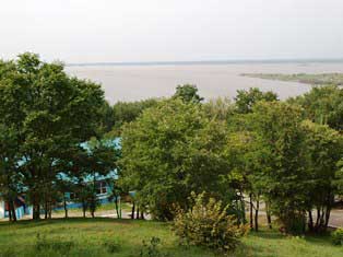 アムール河畔に、かつてのピオネール・キャンプを彷彿とさせる広大な施設があった。 (2012年8月撮影)