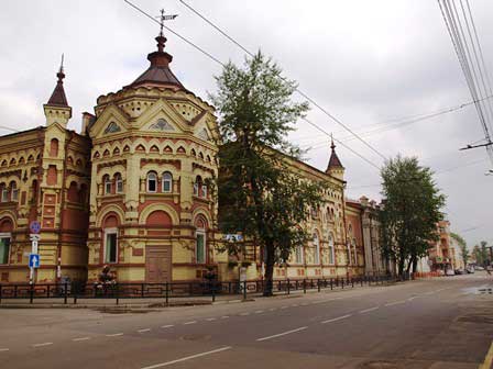 イルクーツク市のほぼ中心部アンガラ河畔にある郷土史博物館。この中の売店で売っているマトリョーシカが安価で良質だと旅行者の間で評判。