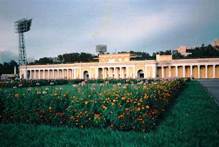 | アムール川沿いにあるスタジアム。下段は、スタジアムへ通じる道にあるゲート。 (上:1984年8月,下:2012年8月撮影)